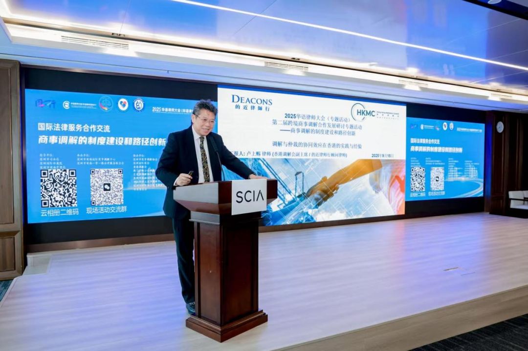 在主旨演讲环节,湘潭大学法学学部副教授段明,聚焦“中国商事调解立法的重点与难点”展开解读;深圳国际仲裁院国际合作与发展处副处长迟文卉,探讨“多元解纷实践探索与华语律师角色”;北京多元调解发展促进会会长翟晶敏,介绍“中国商事调解的调仲实践”经验;国联政信科技有限公司研发中心总监郭少堋,阐述“前海国际商事调解中心的数字化实践”成果;香港调解会主席卢上赐,分享“调解与仲裁合作在香港的实践与经验”。