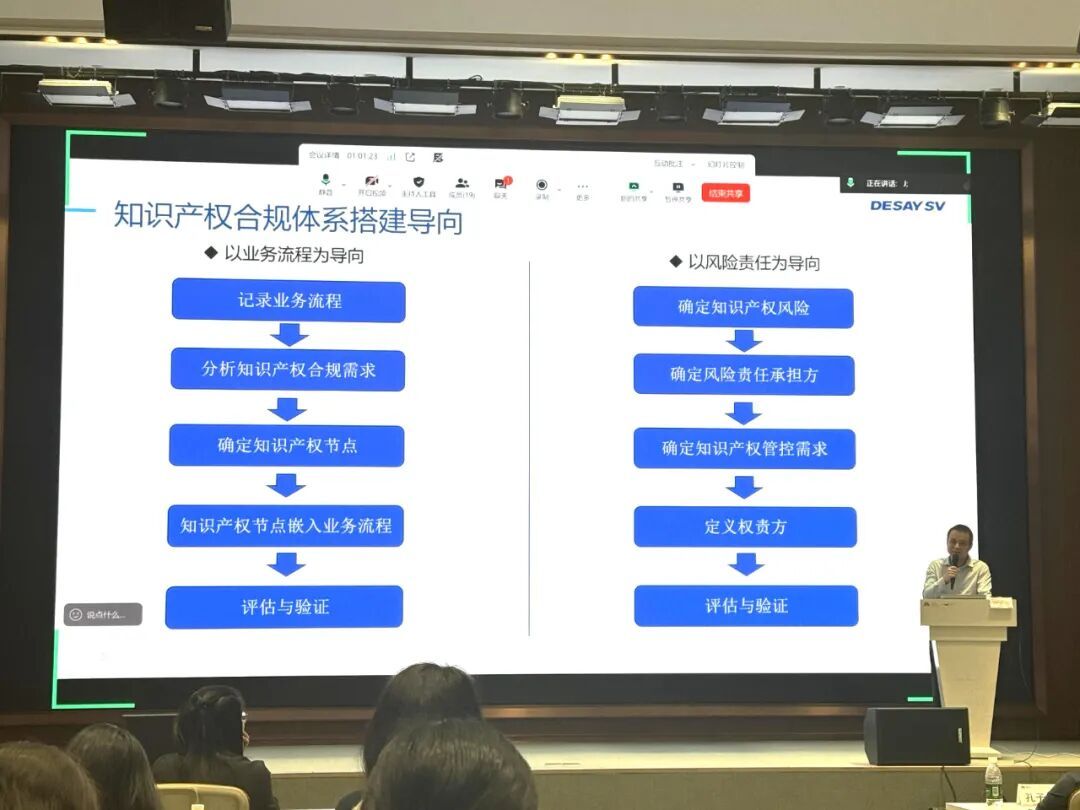 培训首讲,惠州市德赛西威知识产权经理郑浩旋以《企业知识产权合规管理》为题,系统解析了专精特新与高新技术企业在专利申请规范、商标使用合规等方面。并结合本地企业典型案例剖析了常见的合规风险,并为企业搭建科学有效的知识产权合规管理体系提供了方法路径。