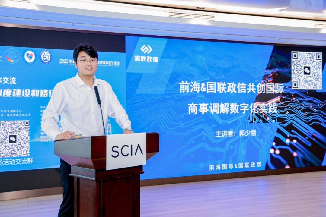 在主旨演讲环节,湘潭大学法学学部副教授段明,聚焦“中国商事调解立法的重点与难点”展开解读;深圳国际仲裁院国际合作与发展处副处长迟文卉,探讨“多元解纷实践探索与华语律师角色”;北京多元调解发展促进会会长翟晶敏,介绍“中国商事调解的调仲实践”经验;国联政信科技有限公司研发中心总监郭少堋,阐述“前海国际商事调解中心的数字化实践”成果;香港调解会主席卢上赐,分享“调解与仲裁合作在香港的实践与经验”。