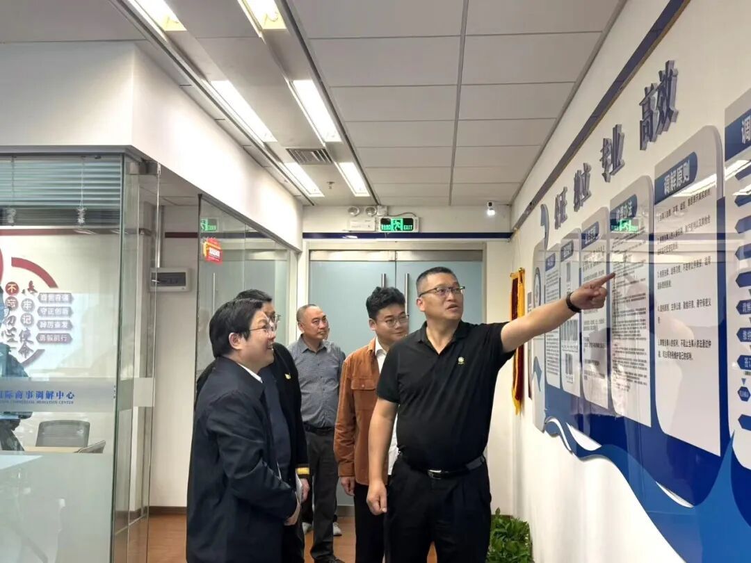 首先,中心理事长危兆宾陪同市中院民四庭庭长王瑞南一行,参观了中心办公场所及业务展示区,并简要介绍了中心的组织架构及业务开展情况。王瑞南庭长就中心主要业务范围,深入了解具体运作细节与实际开展情况。