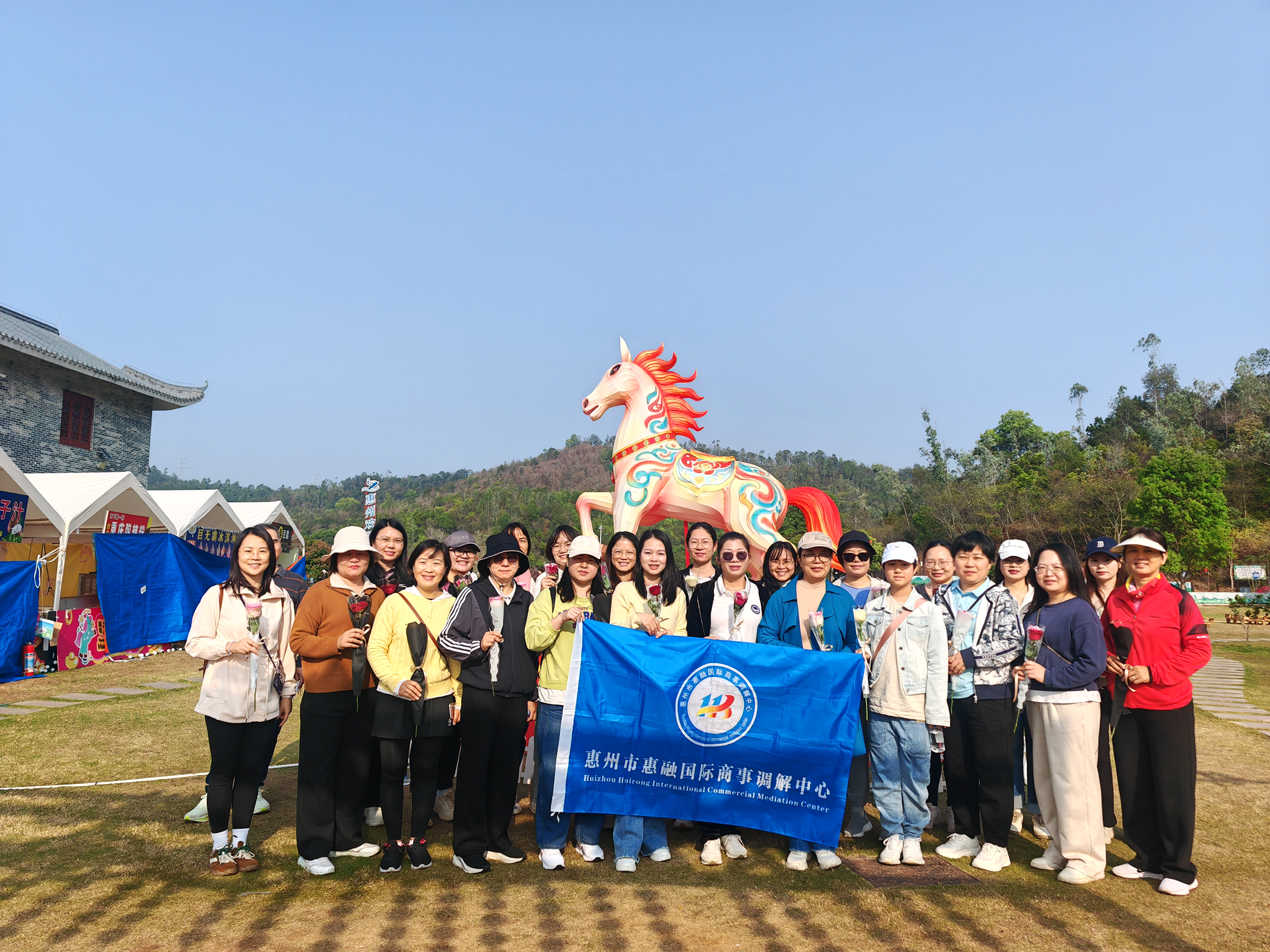 清晨,参与者在景区入口广场集结签到,领取活动物资后,共同拍摄了洋溢着笑容的集体大合影,为活动留下了美好的第一帧画面。随后,惠州仲裁委员会曾红艳主任发表了热情洋溢的开场致辞,向在场的所有女性奋斗者致以节日的诚挚问候。